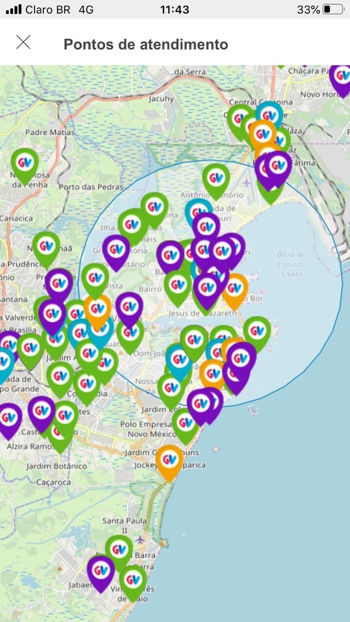 - Permite visualizar pontos de recarga do Cartão GV