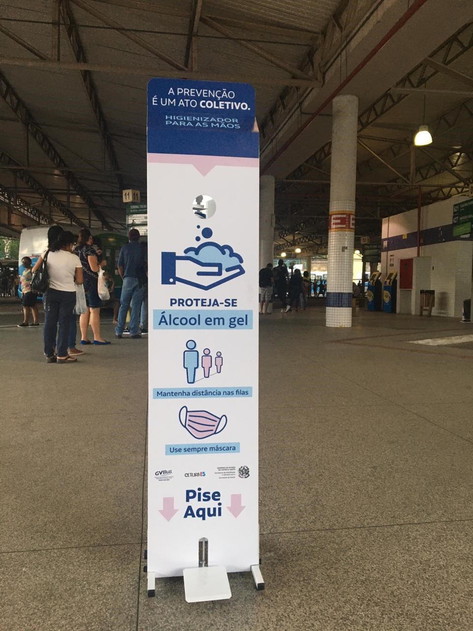 A Secretaria de Mobilidade e Infraestrutura (Semobi) e a Companhia de Transporte de Passageiros do Espírito Santo (Ceturb-ES) adotam mais uma medida para conter a propagação do novo Coronavírus (Covid-19). Os terminais do Sistema Transcol começaram a receber totens com álcool gel para utilização pelos passageiros. Ao todo, 100 totens serão instalados até o fim desta semana.