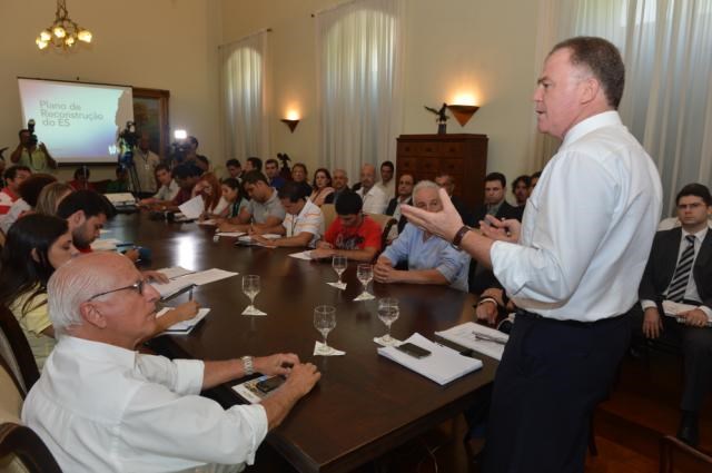 O Governo do Espírito Santo lançou, nesta quinta-feira (02), um conjunto de medidas voltadas à recuperação dos municípios afetados pelas fortes chuvas do mês de dezembro de 2013, com foco na infraestrutura, no setor produtivo e nas pessoas, batizado de Plano de Reconstrução do ES. A estimativa da Administração Estadual é de que os investimentos na recuperação do Estado alcancem a marca de R$ 540 milhões.
