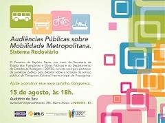 A Secretaria de Estado dos Transportes e Obras Públicas (Setop) e o Departamento de Estradas de Rodagem (DER-ES) realiza nesta quinta-feira (15) uma audiência pública para debater sobre a licitação do serviço público de transporte coletivo intermunicipal de passageiros, em Linhares.